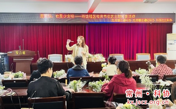 5月9日上午9点,玲珑社区二楼大会议室内花香四溢、笑语盈盈。为弘扬感恩母亲的传统美德,提升女性健康意识,玲珑社区联合龙虎塘街道科协、龙虎塘街道经科办精心策划的“是妈妈,也是少女呀”母亲节花艺主题科普活动圆满举行。活动融合健康科普与花艺创作,吸引了20名母亲热情参与,为社区母亲们送上了一份别具匠心的节日礼物。