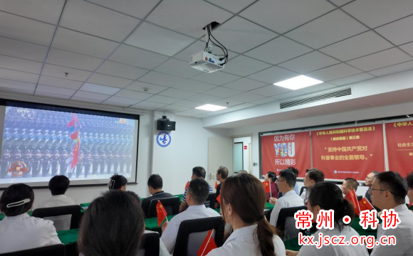 与此同时,辖区内常州科研试制中心有限公司、北极星口腔医院、中科健康产业集团常州有限公司、常州电梯厂有限公司、常州瀚景口腔医院、常州市森予社会工作服务中心等十余家会员单位,也分别组织员工与老科技工作者代表开展集中收看活动,各单位收看现场秩序井然,大家共同感受国家强盛与历史厚重。无法到场的会员则灵活选择居家观看,通过电视、“学习强国” APP 等平台同步见证盛典。