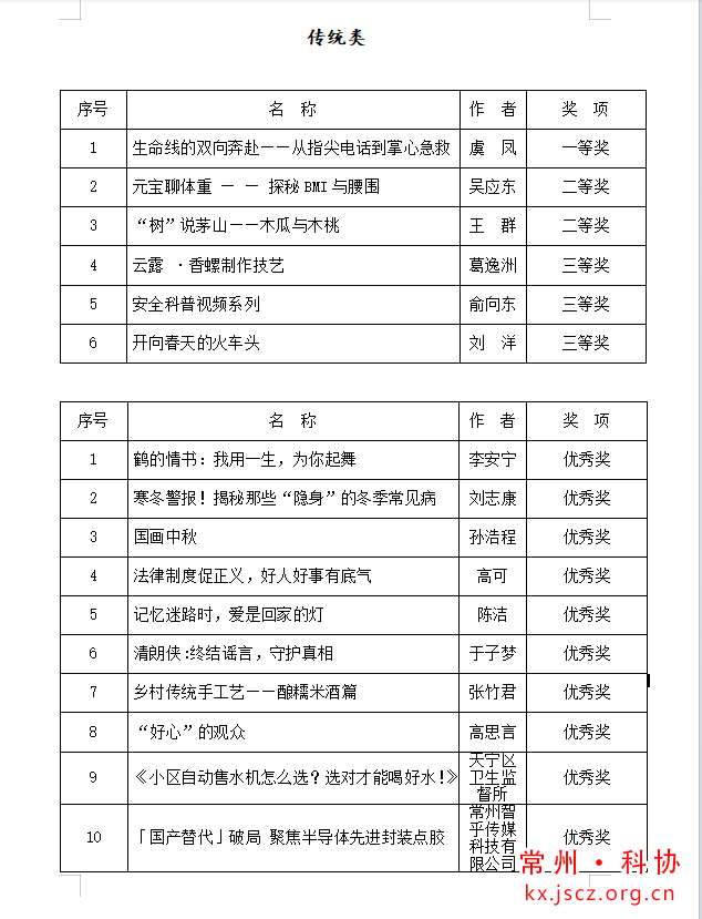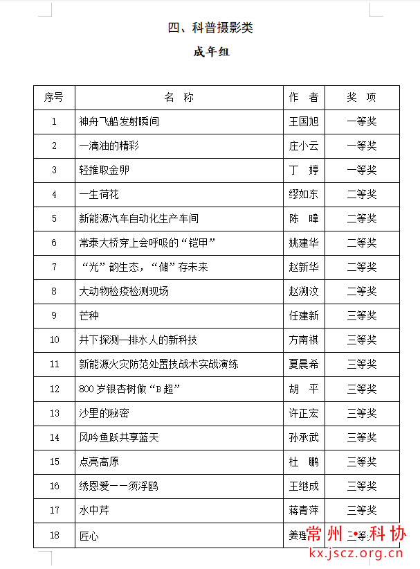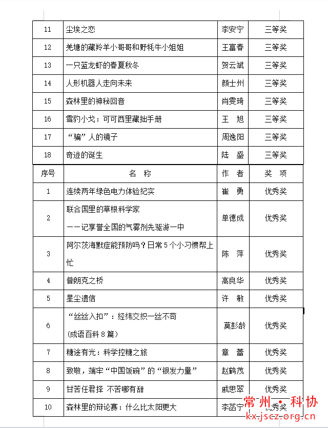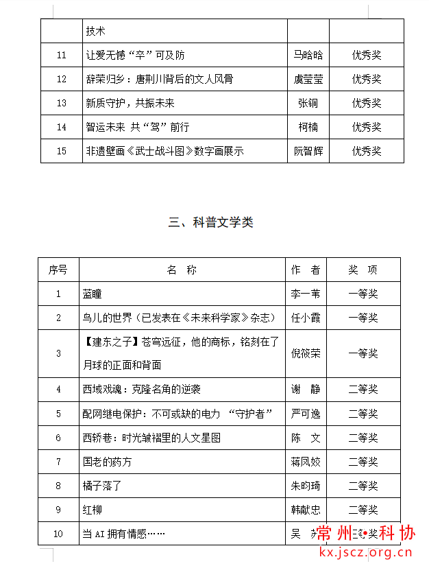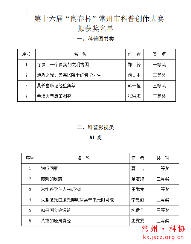 第十六届“良春杯”常州市科普创作大赛获奖作品评选结果公示